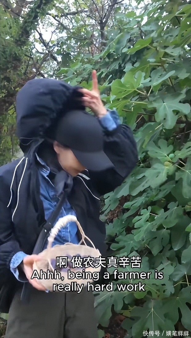 正忙之际,天空忽飘起绵密细雨,她并未匆匆躲闪,反倒利落地拉起外套兜帽扣于头顶,继续专注采撷,末了还俏皮叹道:“原来当个果农,真得有点耐力。”