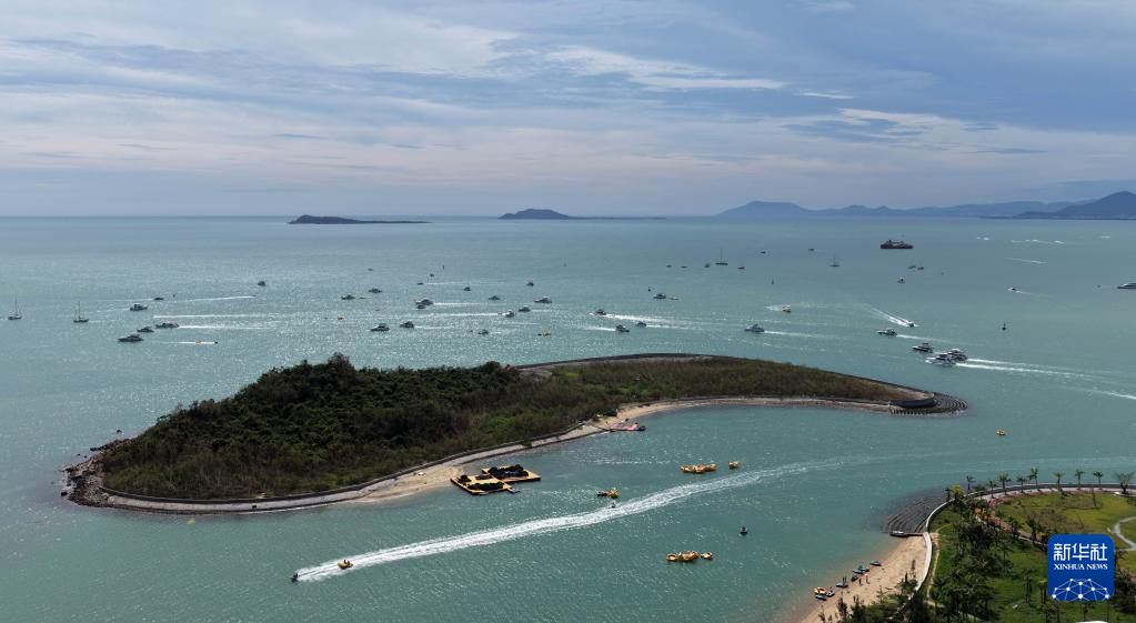 8月27日,游客在海南省三亚市乘坐游艇出海游玩(无人机照片)。