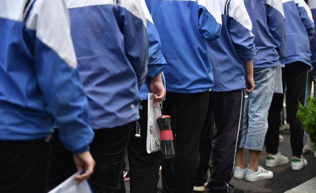 等待进入考场的中考考生
