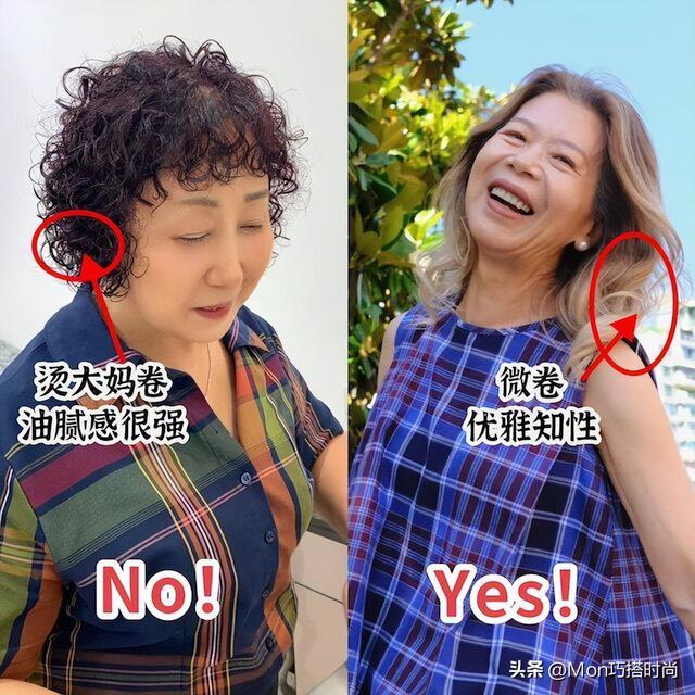 大部分中年女人都习惯跟风去理发店烫这种满头小卷发,乍一看像是顶着个西蓝花在头顶,虽然显得发量很多,但这种过小、过密的卷发也会让我们的发质看着没有垂顺感,头发炸开显得乱糟糟的,衬得头大脸宽,年龄直接增加二十岁都不夸张。