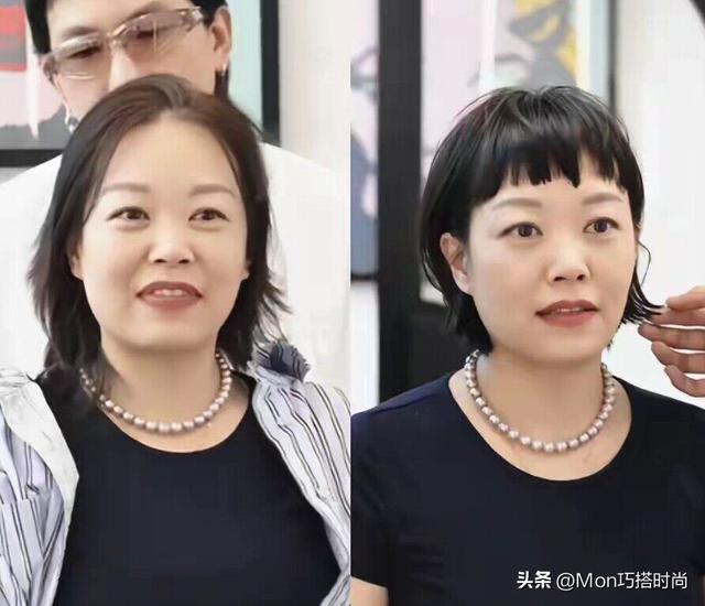 也有不少上年纪的女人为了省时省力、减少打理发型的时间,直接去理发店剪微商头短发,本意是想显得利落精神、干练知性,可没想到竟然变成了微商女老板的既视感,因为这种头发集中在我们的头顶,没什么层次感,缺少空气感和灵动度,对脸型和五官的修饰效果很差,还会显得气质特别的拘谨严肃,甚至有一种顶着假发出门的既视感。